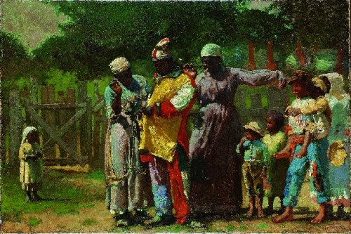 This survey does not include a single work by an African American painter. An obvious omission is Henry Osawa Tanner's 1893 "The Banjo Lesson" from the Hampton University Museum, in Virginia. There were surely a number of possible loans of a significant work by this artist. Perhaps an early work by Horace Pippin (1888-1946) might have been included.
