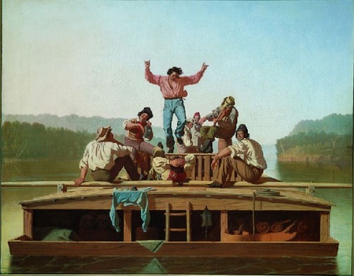 Also from Saint Louis there is the riveting statement on mid 19th century politics "The County Election," 1852, by the Mid Western master of genre, George Caleb Bingham. Well, there's another reason to book a flight to Saint Louis. The Met is showing its own great Bingham the sublime "Fur Traders Descending the Missouri," 1845. There are other great works by Bingham including Brooklyn's "Shooting for the Beef" and from the Manoogian Collection his seminal "The Jolly Flatboatmen," 1846. This latter painting makes one think of Mark Twain and his tales of the Mississippi.