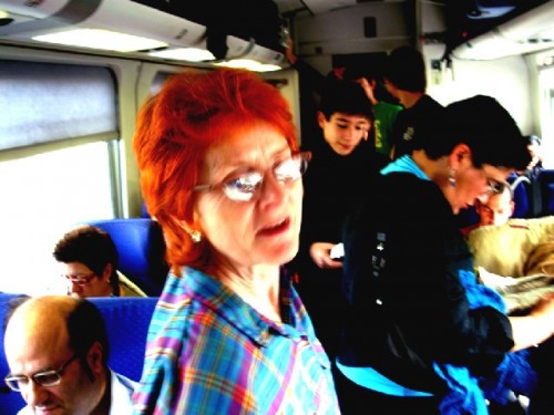 After a few stops, as passengers came and went, we made our way to the center of the car. It seems that it was a holiday, a Memorial Day, for the martyrs including those who had fallen to the Mafia. For the occasion there had been a huge bust in Sicily which was all over the news. For the long weekend everyone was traveling.