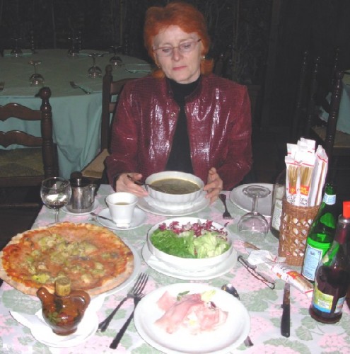It seemed well thought out and just a matter of execution. But there was the all too familiar agita of making all those connections. The last night in Bologna went well with yet another magnificent meal. We had arrived early, with no reservations, at a recommended restaurant. They were just opening for the evening. It took some persuasion to be seated, and then, another negotiation for a better table. All of which was worth the effort. A professor seated next to us congratulated us on having selected one of the best family style restaurants (trattoria) in the city noted for superb cuisine. This was confirmed when we left finding a line winding down the street. We strolled about the center of the city before retiring for the evening.