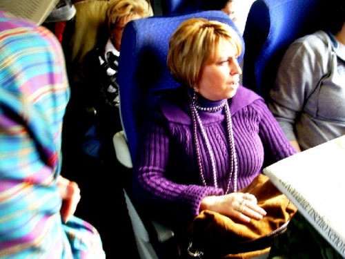 Standing for several hours in a densely packed train we tried every possible combination of posture and position. At one point I even tried to sit on the floor. Or put my butt now and then on the arm rest of a seat. Occasionally, somebody would leave a seat to find the rest room which was quite a challenge. By an unwritten rule they returned to reclaim their seat. The complaining woman also got up and moved about stating how much it inconvenienced her. I studied her and tried to understand an unpleasant persona in a purple sweater with cheap plastic beads around her neck. How I longed to tell her to F-off.