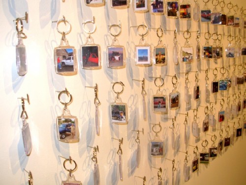 This was our first visit to the spectacular new ground level space of RHYS Gallery which has a corner of a brand new luxury condo building. Development is evident all over the South End and has the potential to bring hip new clients for the nearby galleries. Art critic, Shawn Hill, was on hand interviewing the director for a piece on new galleries for Art New England. The large space was divided into two exhibitions. In the front, a range of abstract paintings and works on paper by Christi Rinklin. And behind the partitions were provocative little objects with tiny photos of people attached to toy vehicles and key chain rings by Heidi Hove Pedersen. They were kindah too cute.