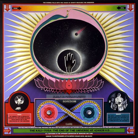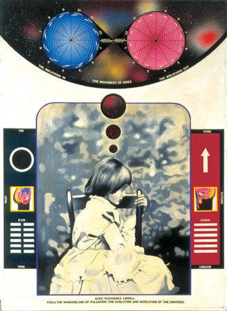 During 1965 Laffoley was working on "The Cosoms Falls in the Chaos as Shakti Urborosi: The Elimination of Value Systems by Spectrum Analysis." As his work progressed it developed into three sub groupings: "Operating Systems" "Psychotronic Devices" and "Lucid Dreams." The works of that time were often somewhat primitive in execution. He had been trained as an architect but not as a painter. His skills at rendering and graphic design would evolve over the next decades. The works often entailed complex schemes, illustrations, and a copious use of hand applied lettering (Letraset) and text. One has to literally "read" and not just contemplate his work. There is much information to absorb and in that sense the "illustrations" and renderings are clues to deciphering the content and philosophy. Over time the paintings have become more crisp and visual while the agenda has deepened. The Kent Gallery is in the midst of compiling a catalogue raisonne.