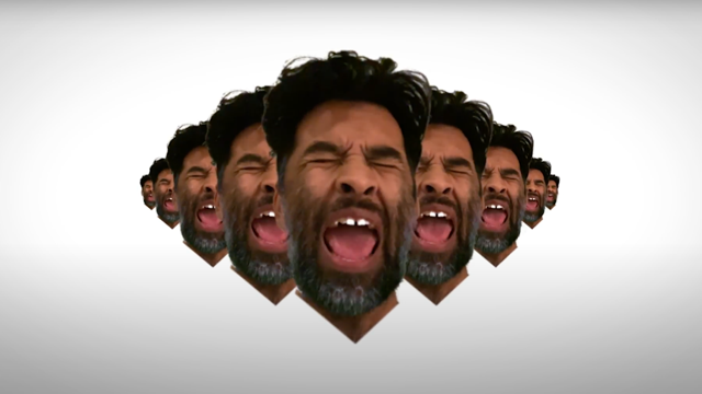 Paul Pinto’s offering, Whiteness:Blanc in “Identity” is full of surprise and both visual and auditory delight. For three years, Pinto was an artist in residence at HERE, an institution that mounts Prototype with Beth Morrison Projects. Pinto uses repeated images of his John-the-Baptist-like head to form a chorus. Adopting super star artist Christopher Wool text pile ups, he explains. Like Mickey Mouse, who learned from black minstrels, Pinto makes use of white gloves to jab at the color of his skin, and its impact on his identify. He is clearly grappling with who he is, announcing that it’s impossible that he was born in Queens. He forages in searching musical lines and tones and images. Head images move with the beat. They work well together and are full of surprise.