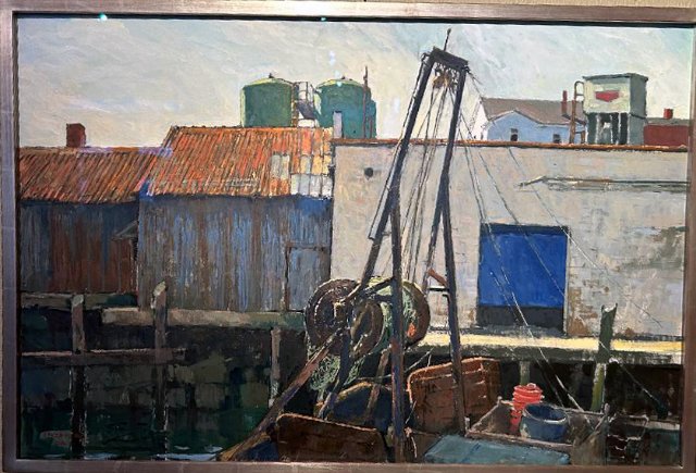 He came to Gloucester as a teenager and never left. For a year he commuted to Boston’s Museum School. At the time he was interested in sculpture and was focused on form. There is a sense of firm composition and strong structure in his work. Add to that the rich clear light of Gloucester. He explains that there are few trees that obstruct how it falls on a building.