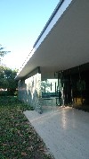 There is a pure elegant structural frame white with all glass walls. These define a simple rectilinear unencumbered interior space that allows the outside light and natural setting to become part of as well as surround the interior. The house has been described by some as sublime and a work of art. It is considered by many to be his best mature work and influenced scores of other glass houses, most notably Philip Johnson's Glass House in New Canaan , CT.