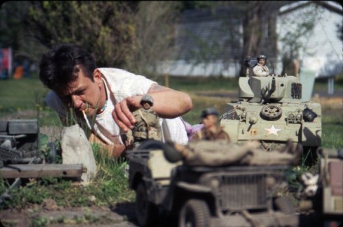 But his artistic instinct has led to the outsider creation of a World War II, 1/6th scale, model Belgian town, Marwencol. It is populated with a collection of Barbie dolls, GI Joe, German, and French soldiers. Over time these items, as well as jeeps and tanks, have been acquired through a local hobby shop.