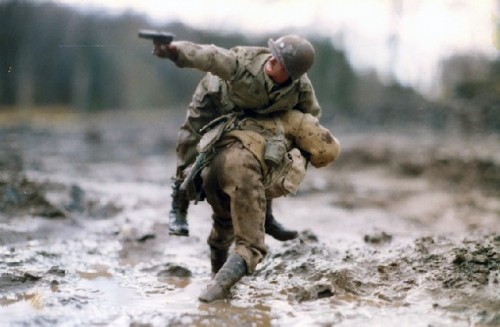Using a point and shoot camera, with a broken light meter, Hogancamp created thousands of snapshots piled into cardboard boxes. If the exposures of the film he sent out for processing are off he simply reshoots the staged setup. Given the miniscule amount of money he receives through disability every spare penny goes to Marwencol and the life of his alter ego, a rugged, battle hardened, tortured, GI. Who eventually marries a gorgeous Barbie.