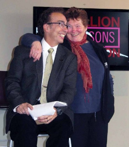 I asked why, for the first time in 35 years, Tina Packer in not penciled into the schedule? Odd that Tony didn’t mention that. Right now she is directing the winter play which was in its second day or rehearsal. Tina popped out for a photo op.
