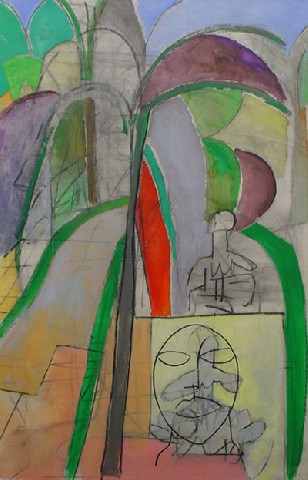 The artist maintained a vital painterly discourse by often referencing the work of her antecedents. For example she painted improvisations of El Greco's paintings including "Purification of the Temple" (c. 1574-75), which Tabachnick titled "El Greco in the Garage" (1975). In an essay titled "Learning from the Past" by curator April Kingsley, Tabachnick stated "I follow this example of El Greco which I have pinned to my wall, where he paints several nudes and unites them with nature. I am carrying this concept further in my own way. I am fusing the figure with the landscape."