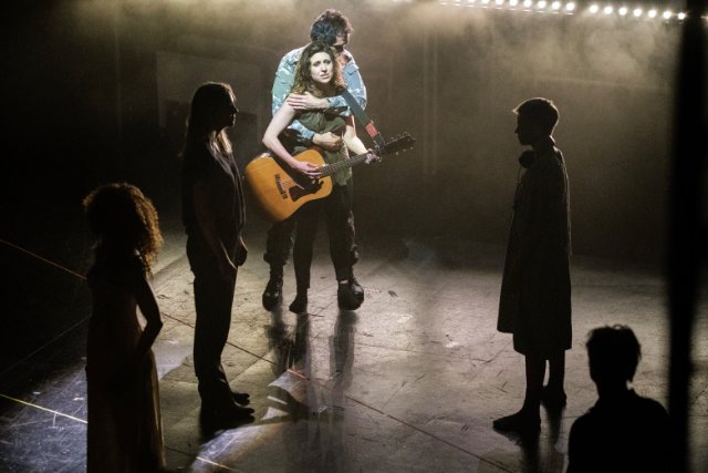 Leah Siegel, who plays the lead character Jib, a reluctant composer and performer in this piece, created many of the songs she sings. About her final song, facing death, she says that she was moved to write it after the death of a loved one. In the show, she mourns her father, who died in Iraq.
