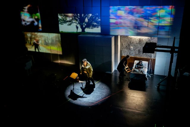 The work changes from day to day, as audiences change. Constant tweaking also subtly changes emphases. Marianna Hoitt-Lange (the daughter who was hit by a car) made a strong impact in one performance, as she skirted the stage with her arms raised in acceptance or denial. She is introduced in a coma, and we are not quite sure whether she is alive or not. Up in the balcony, you can feel the wind as she whips by.