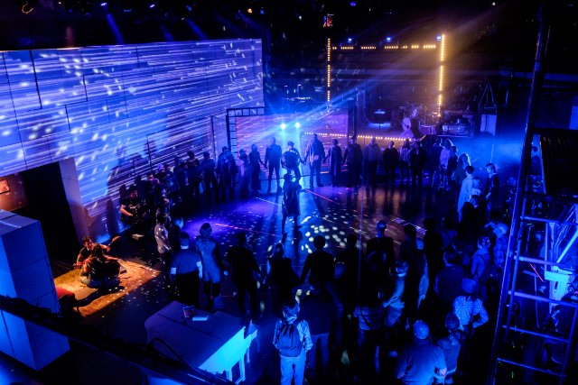 Circles are also a theme. The crashing waves are circular. A 12-step confession takes place in a circle. Perhaps most touchingly, the audience members are invited by actors to participate with them on stage. Actors ask audience members to stand and form a circle with their arms. The actors dart underneath and up, to accept an embrace and also deliver one. One actor said "thank you" to her accidental partner.