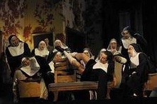 The second Act takes place in the presumably protected zone of a convent, to which the Countess and other women have retired for protection. D'Ory gets the idea of dressing as journeying nuns from Isolier who plans to enter the convent as a pilgrim. Camarena and his troops are physical actors who prance and dance to the blissful Rossini tunes.