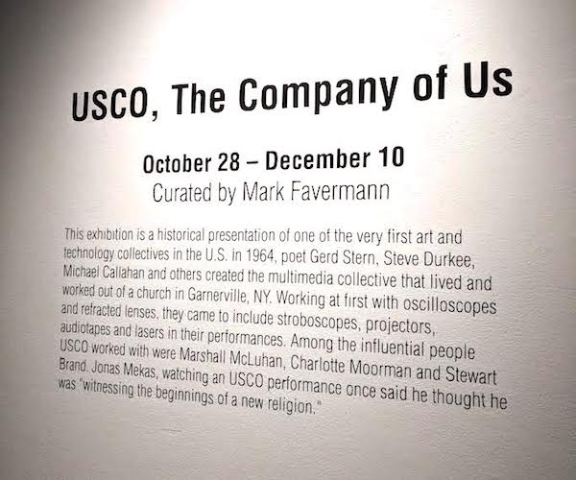Gerd and I visited the exhibition together to see several USCO pieces. The exhibition was a kind of time machine. The artwork was an interesting mix of strong graphics, kinetic art, and multimedia pieces that reflected the Age of Aquarius. It displayed Flower Power and Psychedelic art in a time of revolution and free thought, as well as sex, drugs, and rock ‘n’ roll.