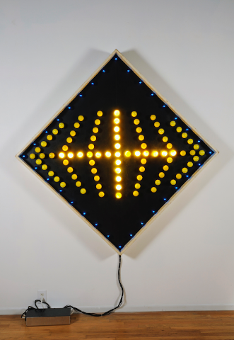 I focused on several pieces that I thought would be both visually entertaining and provocative, as well as works that would underscore the art of the 1960s through its available technology. The exhibit included not only objects, but a slide presentation that was used (in-part) to illustrate lectures that Marshall McLuhan gave in the ’60s, early documentation of USCO members working on creative projects, and some of the period’s short experimental films. Thanks to the wonderful resources of the Boston CyberArts Gallery space, USCO’s art was displayed in its visually compelling best.