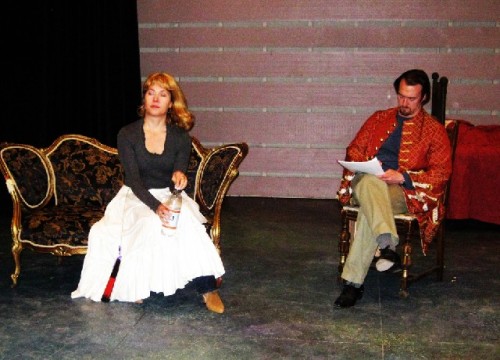 My assignment was to sit in on an hour of the ongoing rehearsals for the play "Les Liaisons Dangereuses" directed by S&Co founder, Tina Packer. The production starring Elizabeth Aspenlieder and Josh Aaron McCabe has a cast of 10. The show is the second winter production for the company which enjoyed great success last year with Aspenlieder in "Bad Dates." This season's play opens on January 29 and will run through March 21.