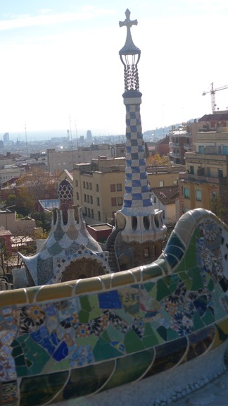 Park Guell is surrounded by a more than two meter high wall that shows the promise of what is inside. Initially the wall was to isolate the complex from the city's noise and distractions. Now it states in ceramic tile expressions of color, excitement and imagination.