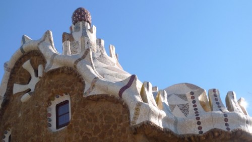 The architect made use of decorative elements to frame and define pieces of the structure like windows, doors and chimnies. At times, the symbolism and decorative elements were quite personal to Gaudi. An example of this is the treatment of the cupola on the caretaker's lodge. The roof is decorated with upside down coffee cups. Supposedly, this was to symbolize Gaudi giving up drinking coffee.
