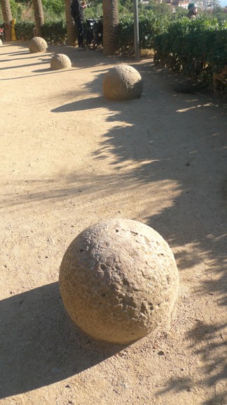 Above and adjacent to the square are a number of pathways that lead throughout the park areas. The Rosary Pathway on the east side is the main pathway that was built atop a Roman road that led to another town. Gaudi used rough rounded bollards symbolic of Rosary beads to establish this pathway.