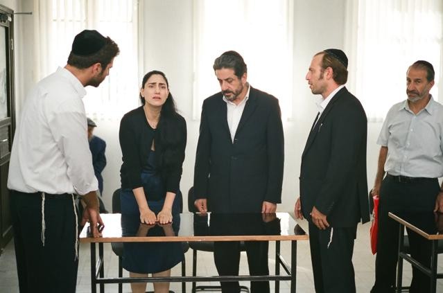 The film opens in a courtroom setting where Viviane Amsalem (Ronit Elkabertz) has been applying for a divorce from her husband Elisha (Sasson Gabai) for three years. She is represented by her lawyer Carmel Ben-Tovim (Menashe Noy), who presents her case and legal papers to a three rabbi tribunal led by head rabbi (Eli Gorenstein). These three gentlemen will eventually adjudicate Viviane’s petition