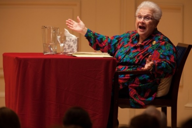 Beyond technical lessons of voice production and emphasis on consonants, which Horne produces herself as a perfect example, she teaches by her presence. She is very warm and often humorous at her own expense. While she worked with Wee Kiat Chia on the Lullaby, she recounted her own experience in putting her grandchildren to bed. "Would you like me to sing a lullaby," she recalls asking. "No," they screamed. "Shall I sing to you?" Another "No" was yelled.