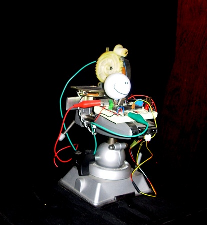 Being of an older and less techie, interactive generation I was rather puzzled by these awkward looking, mobile sculptures. In what way might one consider them to be works of art? This is a question I addressed to the artist as we spun about in the former, street level, retail space of what was once the lively commercial heart of the now largely dormant factory town, Adams, Mass. The owners of Greylock Arts, Marianne Petit and Matthew Belanger, have ties to the ITP where she teaches and from which he graduated. They share a common passion for arts, science and technology. They named their gallery Greylock after a magnificent view of the largest mountain in Massachusetts which they see from the top floor of an elegant, three story, brick building.