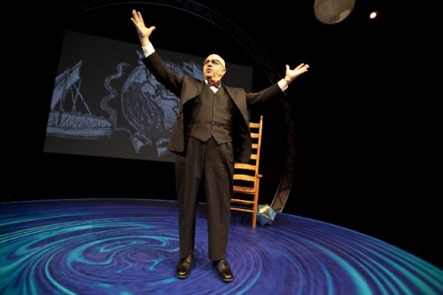 Sometimes a performance is so good that it is hard to discern where the actor stops and the character begins and vice versa. Thomas Derrah as Buckminster Fuller at the A.R.T. is one of these theatrical phenomena. To say that he is superb would be an understatement. This is a tour de force. His performance is at once funny and serious while being intellectually stimulating and hopeful.