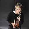 She replied "There are these little keyboards. I like junky physical stuff so that if it breaks on the road you just throw it away and get another one. As for software it's complicated. There are foot pedals that allow ways to access sound. It is also home made. This is one that has keyboards that you can play with your feet. It's a lot of fun. This violin was designed by Ned Steinberger. You can play it attached to your shoulder and it leaves your hands free to do something else. I'm also learning these new numbers. I prep that while checking out the laptop, while telling a story. I'm tweaking levels and stuff."