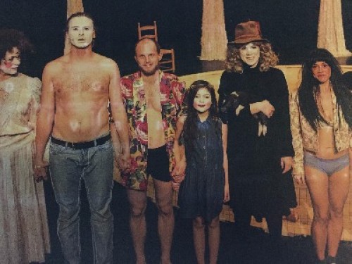 After an odd intermission (in which a husband & wife team of scant talent sing, “dance” and interact with the audience members who stayed in their seats), Act 2, the so-called "Elektra Cabaret" begins, consisting of a variety of vocal performances ranging from Phil Collin’s “In the Air Tonight” to Beyonce's "1 + 1," to an ear-splitting version of Eminem's “The Monster,” performed by Young and her rather talented 8-year-old daughter, Lovey. Before the latter, there is a disturbing monologue by two performers during which they share their violent fantasies while "masturbating" (I was relieved to see that Young’s daughter left the stage for that particular part of the show!). The audience is informed that the performance has come to an end when Orestes says: “The show is now over. You can have photos taken with the pig in the sand pit.”