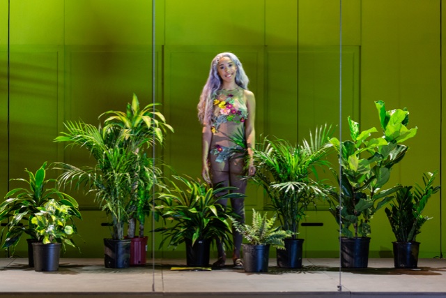 In Rev 22, the Garden of Eden and Adam and Eve are introduced for the first time since Genesis, thousands of pages ago. Sophia Byrd looks like an Eve Barbie doll as she first appears amidst the garden’s shrubbery. She describes her voice as soprano with belt which this Eve has. She moves well reflecting the dancer she also is. Still a college junior, she has appeared at BAM and with Riccardo Muti. Listening to her and watching is a real treat.