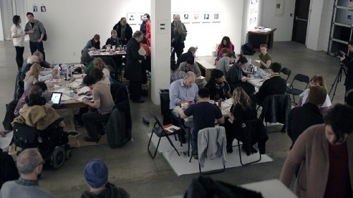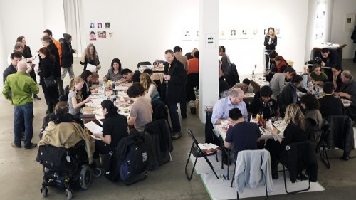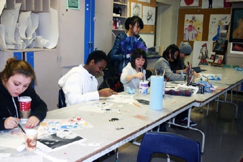 Freeman held a workshop of Friend Me Projects Goes to School at the Central Commerce Collegiate High School in Toronto. She spent four days with grade 11 students, who painted from their own profile photos. Carole showed a selection of work from the exhibition as well as a one minute time lapse video, depicting one of her portraits. The video can be seen online. Student paintings will be exhibited at the school and at the website and the entire class went to see Carole’s exhibition at the gallery. Meanwhile, several other schools inquired and workshops are being planned.