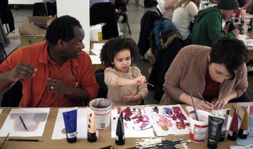 Face the World, the first global paint party happened on January 5th at the Edward Day gallery. The wonderful energy at the event, which was open to all, speaks volumes in the photos that are attached to this article. Beautiful portraits were created by mostly non painters. There were 50 and more individuals, friends and families, who came to the event and spread joy! Some of the portraits of the evening will also be offered at auction.