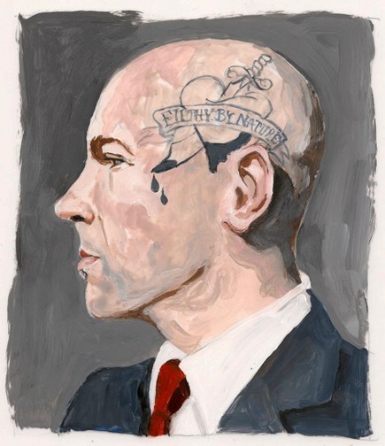 Suddenly, there it was on my Facebook page: A painted portrait of my Facebook photo! I was positively stunned, I wrote on my page and encouraged my 3000 plus readers to look into Carole Freeman’s project and exhibition of friend me: Portraits of Facebook. It was a December 2011/ January 2012 show at the Edward Day Gallery in Toronto, Canada. Meanwhile, some of my Facebook–friends (Fb) have left messages under the portrait painting on my Fb-page. I suggested to them: Stay tuned.