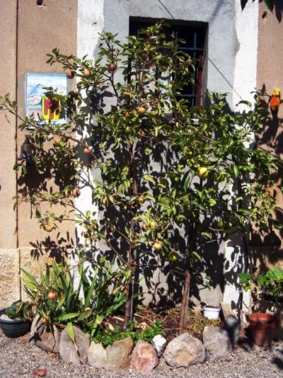 In Dirk and Mireille's garden grow beautiful bushes and trees, grape vines, and they also own an adjacent scrubby plot. Mireille had originally hoped to keep her horse on the land, but growth on the open space was difficult to maintain. Summers in the region are hot. The climate is dry, which is good for growing grapes and olives, as well as orchards for apples and peaches. Yet, a mistral like wind can wreak havoc over the land and the sea shore. Mireille spent 20 years as an equestrian, traveling and competing with her horses. They had owned and maintained a working farm in Aalsi for many years, as well as professional careers, before moving South.