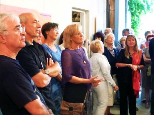 Ursula Kara from Germany helped me name all the different countries that are represented in Paraza: Of course France, then Belgium, the Netherlands, Germany, Switzerland, England, Scotland, Denmark, Sweden, Norway, Finland, Portugal, Spain, Italy, Poland, Hungary, USA, Laos, and Pakistan. We actually met a father and son at the opening, who were speaking Hungarian to the painter Kalman Maklary. There, we discovered a family from one more nation, because they had recently settled in Paraza.