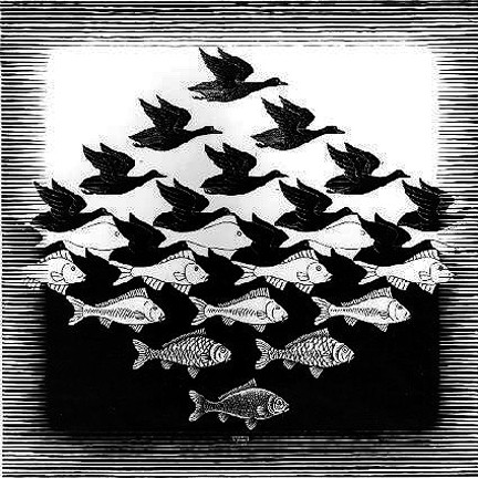 Walk them through the magic where Escher turns birds into fish. Or primates into men.