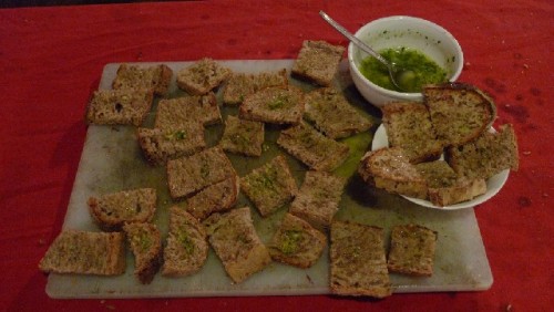 After every show, the company distributes a just baked rather rough sourdough rye bread and aioli (garlic sauce). To The Bread & Puppet Theatre, bread and art are the staff of life.