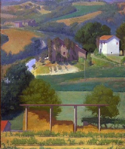 Quin's landscapes also carry political values, and regardless of where he paints, his work implicitly represents an opposition to the destruction of the countryside and the spread of anonymous and vulgar suburban developments. In his work, too, he finds liberation in his solitude before nature—away from the complexity of human conflict. His choice of farm country, in both Italy and America, as a place to live and work can be seen as Quin's urge to dwell in places that convey a sense of an enduring past, of Arcadia. Certainly the very urban hunger for "green" values underlies the appeal of Quin's landscapes.