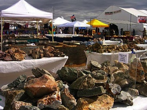 A number of these shows are directed at the jewelry trade and require credentials to enter while others are open to the general public. Many have a distinct focus. Several are devoted to beads and bead making arts. One of the largest is oriented around the healing, mystic and spiritual properties of gemstones. Several are primarily for fossil dealers and collectors. There is a show exclusively devoted to native American tribal art, an African art village, and vendors from almost every natiom in the world. All together they are spread out over close to 100 square miles of the city.