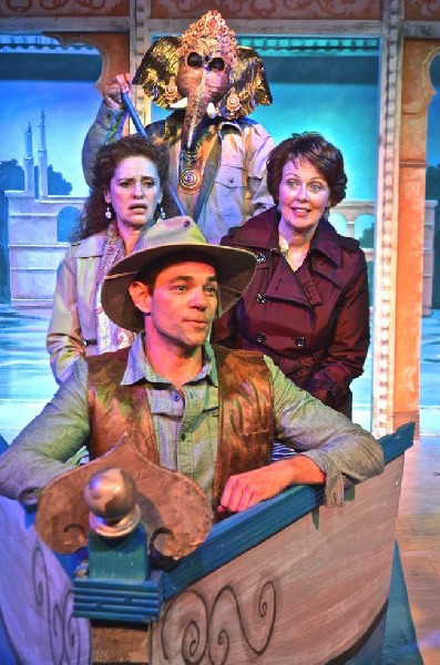 In the technical credits department the set design by Jimmy Cuomo cleverly enlarges his staging area, allowing for movement necessary for the multi-locations and props required to render a true feel for the country. The costumes and the elephant headdress worn by the Ganesh are designed and created by resident costume designer Aalsa Lee.