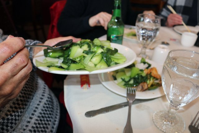 Enrico generously passed the bok choy saying with a tease “Here’s your duck.”