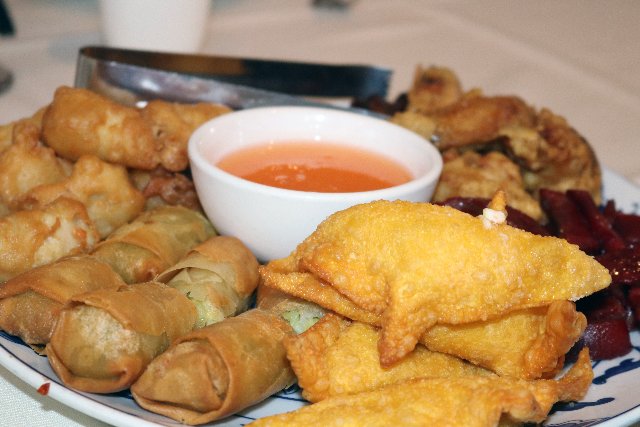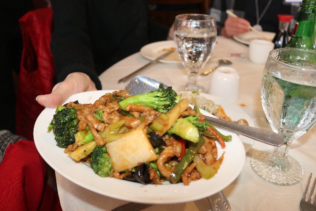 With that we settled into a sumptuous feast. That started with soup followed by Pu Pu platters. The trick is pacing as there were ever more dishes. A staff of waiters had a difficult time squeezing through a series of tables. You also had to be quick to respond as dishes were passed.