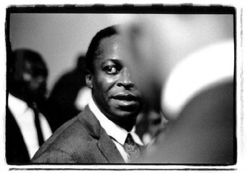 One of his first free lance assignments was to cover the legendary, tenor sax player, Lester Young, at the Five Spot Café, in 1958. Shooting at night with available light he created an enduring image of Young, holding his instrument case, wearing his signature porkpie hat. The scene is backlit by a storefront and there is a sign projecting from the building that reads “Newly Decorated Furnished Rooms.” The musician with arm outstretched is pointing to something while engaged in a conversation with an unidentified man.
