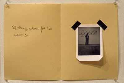 Sure Sure Davi Det Hompson: 1976-1995 is an unconventional retrospective organized from the artist’s estate with the generous assistance of his wife Nancy Thompson and many members of the Richmond art community. The bulk of the exhibition contrasts two bodies of seemingly unrelated work: 21 booklets of found quotations from 1976 to 1980, exhibited on sign stands and arrayed to resemble a crowd of chit-chatting gallery goers, and 27 abstract, pseudo-primitive, pictograph and symbol suggestive paintings made between 1987 and 1995, in which Hompson seems to replay the entry of language into painting and conflate it with the quiet exhaustion of painting in single-color abstraction. These two groups of objects confront each other, playing the roles of art and audience, within the rubric of a New York gallery exhibition opening. The subtitle of one the booklets, “O,, hints at the possible relationship between them: “Sixteen plucks on a string attached between the base of the viewer’s optic nerve and the reader’s larynx.”