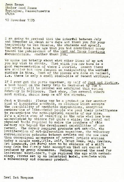 A respected young American member of Fluxus in the late 60s and early 70s, Hompson’s initial successes included a solo exhibition of sculpture and prints at Alexander Iolas Gallery and his inclusion in canonical exhibitions such as Art by Telephone at MOCA Chicago, the Whitney’s Ray Johnson: New York Correspondence School Exhibition and Yoko Ono’s This Is Not Here. He cemented his international reputation in alternative art circles in 1973 as the sole organizer of the improbably successful avant-garde exhibition (for the Anderson Gallery at Virginia Commonwealth University in Richmond), An International Cyclopedia of Plans and Occurrences.
