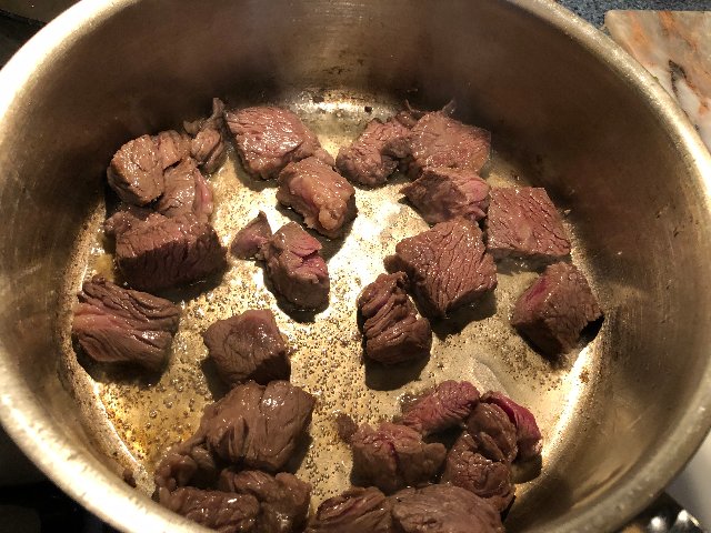 There were a number of suggestions for what beef to buy but the most common was chuck. To cut yourself into bite sized cubes. By no means buy stew beef. One chef described that as lousy meat the butchers are packaging to get rid of.