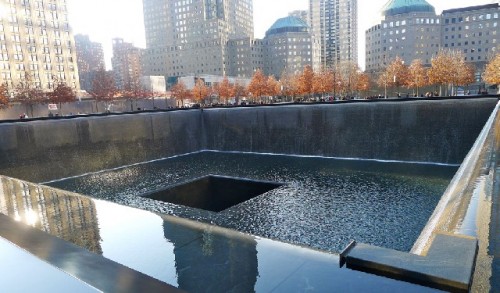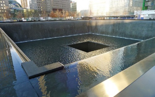 Starting with one of the two memorial pools set in the footprints of the original World Trade Center Twin Towers, we were emotionally moved by the 30 foot waterfalls cascading into the pools that descending into a center void. The names of the victims are movingly inscribed along the bronze parapets framing the pools. Its name says it all--Reflecting Absence.