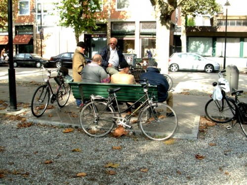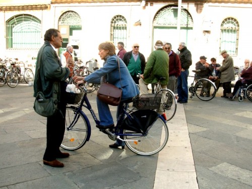 Like a lot of small Italian towns there are more bicycles than cars. Everyone was pedaling about. Or stopping to talk in small clusters. There were the old men on benches and mothers pushing strollers. The occasional lovers embracing. And those truly magnificent mosaics as we followed the map and found our way through narrow winding streets.
