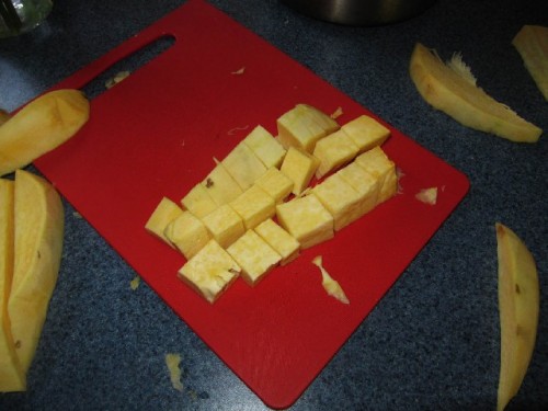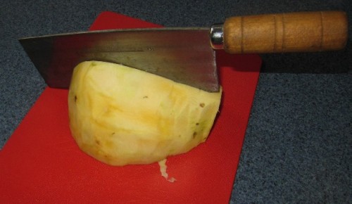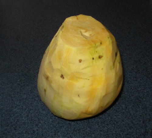 Using a carrot scraper with some effort I managed to peel it. Surfaces I couldn’t get to I attacked with a knife.